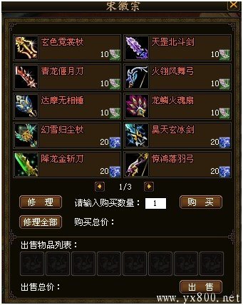 在开封皇帝宋徽宗处,选择大宋神器,可以打开神器兑换界面,用道具兑换不同等级的门派神器。