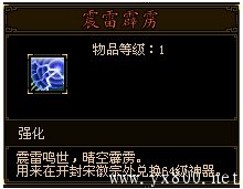 2、震雷霹雳:震雷鸣世,晴空霹雳。用来在开封宋徽宗处兑换64级门派神器。