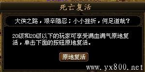 当玩家等级小于等于20级时,会享受自动满血满气原地复活,单击[原地复活]按钮即可成功复活,且没有任何死亡惩罚。
