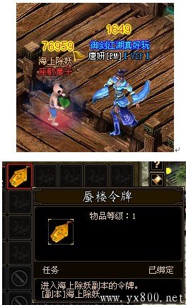 3、海市地图小BOSS座敷童子出现,打死座敷童子后,自动掉落蜃楼令牌到玩家背包的任务栏中。