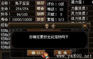 宠物宝宝:抓捕的宠物有一定几率是宝宝,还童得到的宠物也是宝宝。宝宝宠物可以进行繁殖得到第二代宠物。