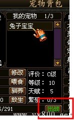 打开宠物界面,在“我的宠物”中选中你需要喂养的宠物,然后选择“放生”按钮,确定后可以将宠物放生。
