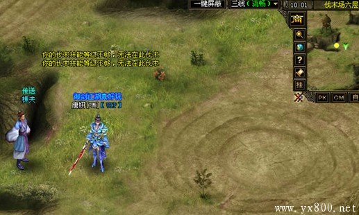 如果选择进入等级不够的伐木场,进入后使用伐木技能,会出现提示“你的伐木技能等级不够,无法在此伐木”。