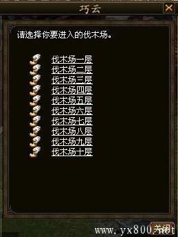 与生活技能NPC对话,选择需要进入的采集地图。采集地图有等级限制,进入伐木场一层需要伐木技能1级,对应的伐木场层次越高,需要的伐木技能也越高。