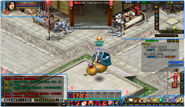 主界面:玩家进入游戏,首先看到的就是主界面。主界面由以下六个部分组成。